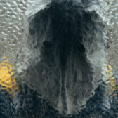 • A blurry black-and-white photo of someone wearing a large white headdress holding several unidentifiable objects.